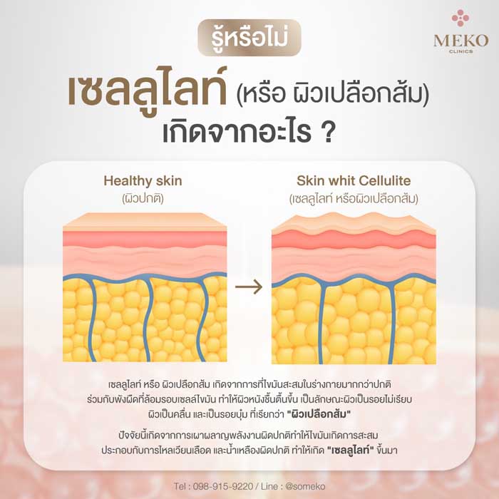 ค้นหาสาเหตุที่แท้จริงของเซลลูไลท์ หรือ “ผิวเปลือกส้ม” ที่คุณกังวล ไม่ใช่แค่ไขมัน แต่เกิดจากหลายปัจจัยซับซ้อน พร้อมแนะนำวิธีลดเซลลูไลท์อย่างมีประสิทธิภาพ