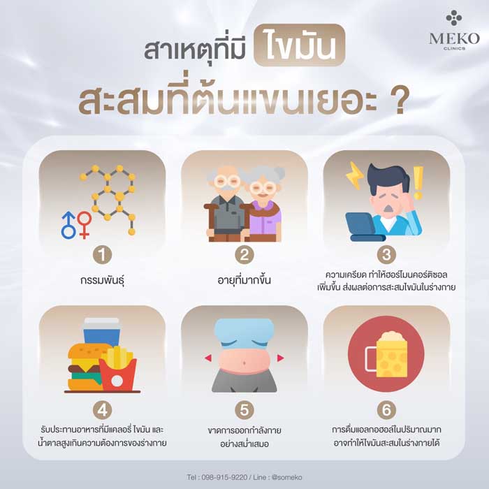 ค้นหาสาเหตุที่ทำให้ไขมันสะสมที่ต้นแขนเยอะ ทั้งจากพฤติกรรม ฮอร์โมน และพันธุกรรม พร้อมแนะนำวิธีลดไขมันต้นแขนอย่างมีประสิทธิภาพ ทั้งธรรมชาติและการแพทย์
