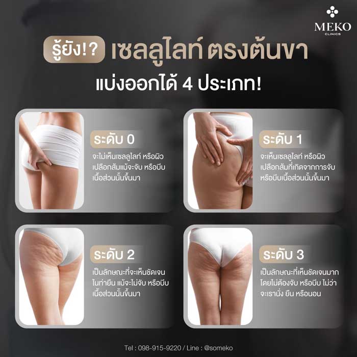 ค้นพบ 4 ประเภทของเซลลูไลท์ที่ต้นขา พร้อมเข้าใจสาเหตุและวิธีจัดการที่แตกต่างกันไป เพื่อให้คุณเลือกแนวทางลดเซลลูไลท์ได้อย่างตรงจุดและมีประสิทธิภาพสูงสุด