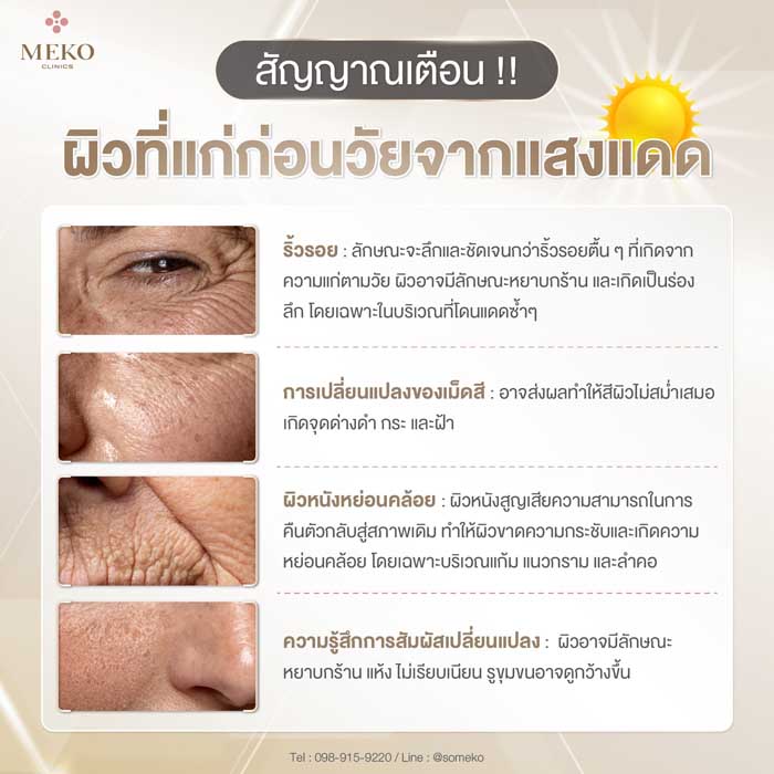 ผิวแก่ก่อนวัยจากแสงแดดมีสัญญาณอะไรบ้าง? ค้นหาสัญญาณเตือนที่พบบ่อย พร้อมวิธีป้องกันและฟื้นฟูผิวอย่างมีประสิทธิภาพ ให้ผิวกลับมาอ่อนเยาว์และสุขภาพดีอีกครั้ง